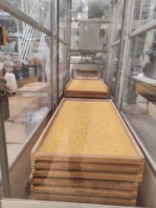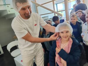 Iskustvenim učenjem učenici 1.a i 2.a započeli su obilježavanje Dana kruha i zahvalnosti plodovima zemlje. U pratnji učiteljica Dušanke Turk, Zdenke Novak i Sanje Kolarić Purgar posjetili su tvornicu tjestenine u Nedelišću. Izvanučioničku nastavu u Tvornici tjestenine Marodi učenici će pamtiti čitav život. Tjestenina od danas za njih više nije samo žuta vrećica s crvenim znakom koju kupe u dućanu. Od danas je to nešto puno više, to je proizvod čijem su nastajanju prisustvovali. Upoznali su čitav tehnološki proces stvaranja, od brašna do ukusne lijepo upakirane tjestenine. Zahvaljujući ljubaznim djelatnicima Marodi d. o. o. učenici su imali prilike promatrati kako se stvara tjestenina po dugogodišnjoj tradicijskoj recepturi obitelji Marodi. Sam ulazak u tvornicu već je doprinio dječjoj znatiželji. Ljubazni voditelj Rajko Brumen objasnio je pravila kretanja proizvodnim pogonom, ali i demonstrirao kako će staviti zaštitnu higijensku kapicu koja je obavezna za ulazak u tvornicu. Učenici su jedva dočekali ulazak. Veoma detaljno objašnjenje voditelja Rajka i demonstracija svakog koraka u proizvodnji tjestenine pomoću raznih ogromnih strojeva koji nose velike količine širokih rezanaca, ribane kašice… oduševilo je djecu. Naučili su da su brašno, voda i jaja važni sastojci od kojih tjestenina nastaje. Na kraju je stiglo i ugodno iznenađenje, nagrada za pažljivo praćenje objašnjenja i pridržavanja svih pravila obilaska tvornice. Naravno, nagrada je bila posebna. Svaki učenik je za svoju obitelj dobio vrećicu tjestenine. Dječji osmijeh kod preuzimanja nagrada bila je mala zahvala i znak zadovoljstva gostoprimstvom koje im je pruženo na čitavoj izvanučioničkoj nastavi. Hvala obitelji Marodi i djelatnicima Marodi d. o. o što su izdvojili vrijeme i uložili trud i strpljenje da djeci približe životno važan proces, proces proizvodnje hrane. Vožnja autobusom do škole bila je ispunjena razmjenom različitih obiteljskih recepata o pripremanju ručka čiji je sastavni dio tjestenina. Učiteljice su radosno zaključile da je planiran ishod ostvaren u potpunosti.