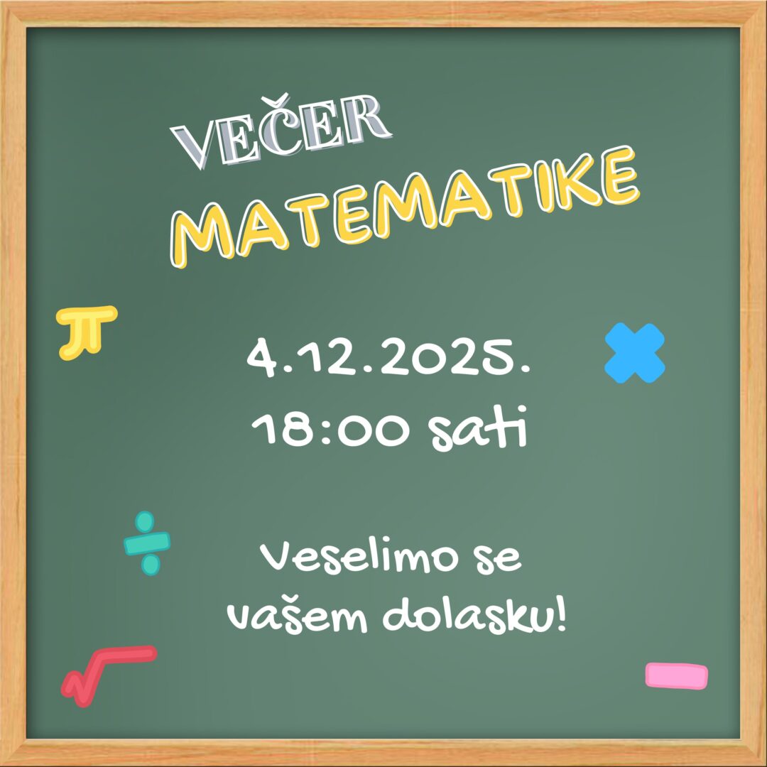 Očekuju vas zabavni matematički izazovi, igre i radionice u kojima će svi moći pokazati svoju kreativnost i logičko razmišljanje.
