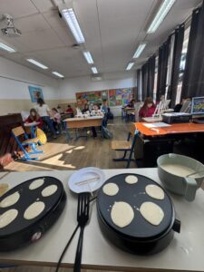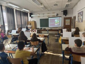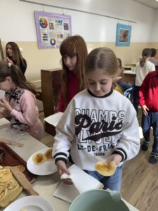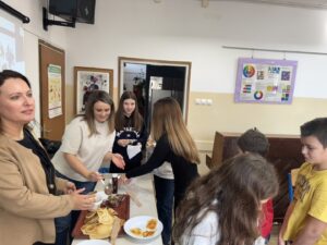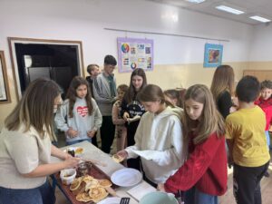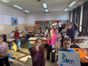 U našoj školi provodi se projekt: “Zajedništvo u bojama”, namijenjen učenicima INA aktivnosti od 2. do 8. razreda. Projekt je osmišljen kako bi djeci pružio prostor za umjetničko izražavanje, jezično napredovanje i međusobno povezivanje kroz raznolike i poticajne sadržaje. Glavni ciljevi projekta usmjereni su na poticanje kreativnosti, razvoj umjetničkih vještina te jačanje jezične kompetencije na engleskom jeziku. Poseban naglasak stavljen je na podizanje svijesti o dječjim pravima, što se ostvaruje kroz kreativne i edukativne aktivnosti. Projekt također potiče suradnju među učenicima različitih grupa te njeguje međugeneracijsko razumijevanje i empatiju kroz aktivnosti povezivanja s osobama starije životne dobi. Jedna od zanimljivijih aktivnosti bila je radionica grafita koju je provela učiteljica likovne kulture Petra Sokač Debelec. Nakon radionice učenici su s velikim veseljem isprobali nove aparate za pečenje palačinki, kupljene kroz projekt dječjeg participativnog proračuna – što je rezultat njihovog aktivnog sudjelovanja na Dječjem vijeću. Time su učenici još jednom dokazali koliko je važno da djeca imaju priliku predlagati, odlučivati i ostvariti konkretne promjene u svojoj školskoj zajednici.